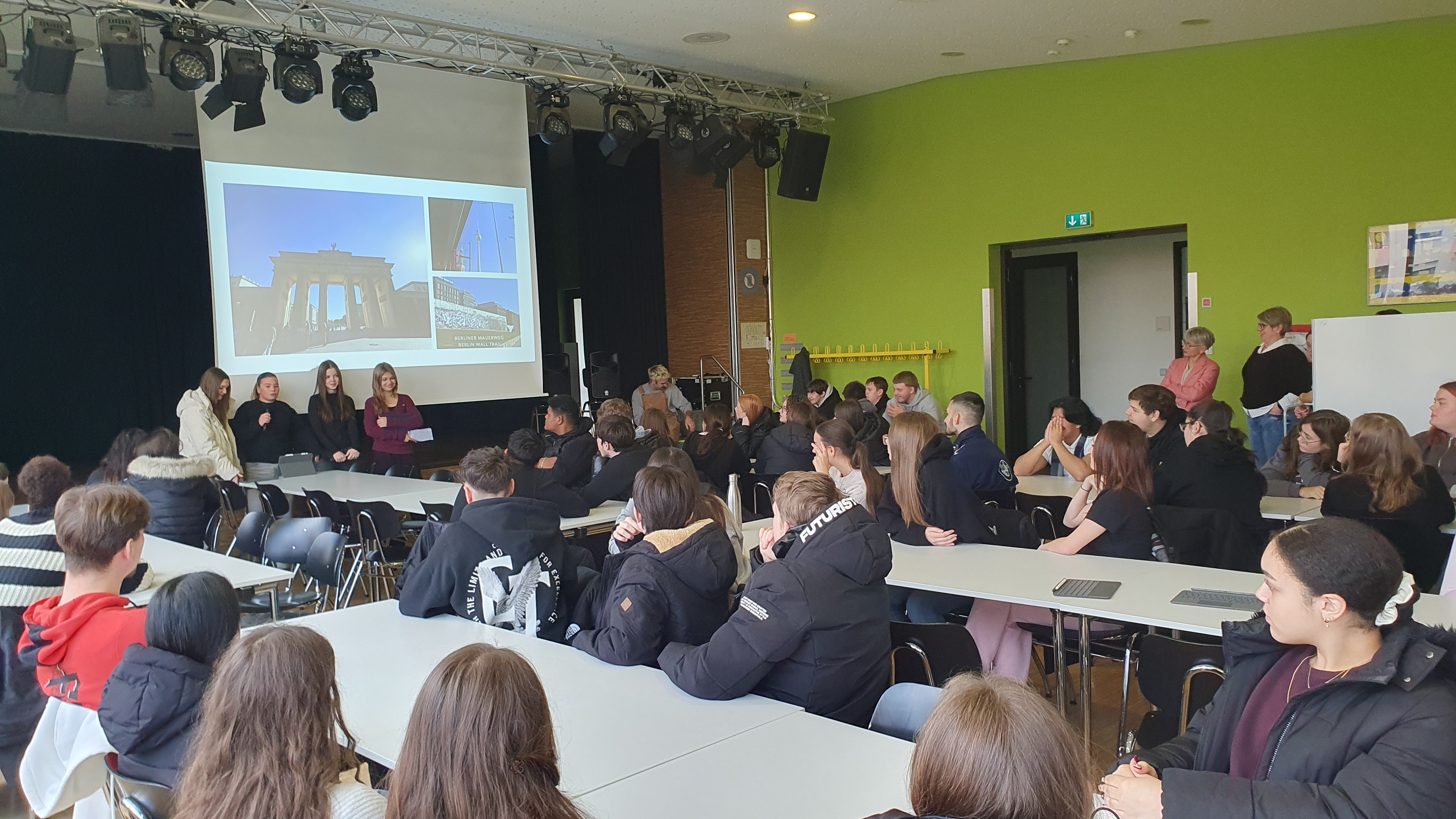 Die 10. Klassen nahmen die Schulgemeinschaft mit auf ihre kürzlich stattgefundene Klassenfahrt nach Berlin. Mit Bildern und detailreichen Schilderungen des Programms vor Ort gaben sie einen lebendigen Einblick in ihre Erlebnisse in der Hauptstadt.
